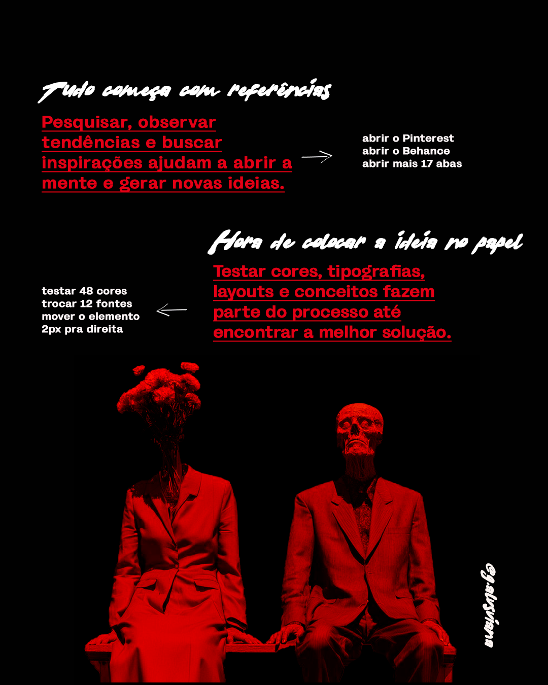 Alguns dos trabalhos que fiz envolvem a criação de artes e peças de design para redes sociais e projetos criativos.