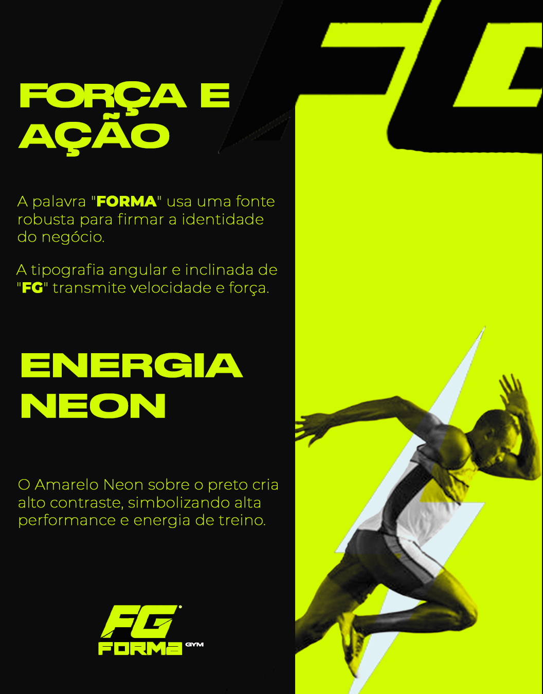 A Forma é uma academia com identidade visual moderna e dinâmica, criada a partir do conceito de movimento, força e transformação. O design utiliza formas geométricas e elementos visuais simples que representam a construção do corpo ao longo do treino, transmitindo energia, disciplina e evolução. A proposta da marca é mostrar que, assim como o design é formado por diferentes formas, o corpo também é moldado com dedicação e constância